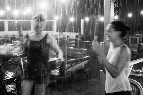Tot die grote zwarte wolken die we al uren in de verte zagen, boven Scheveningen braken, precies boven onze Fat Mermaid. Er was regen, er was wind, er waren harde klappen van de onweer en al het regenwater wat boven op de boulevard neer kwam spoelde via ons terras terug naar de zee..